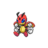 Ledian is a coleopteran insectoid Pokémon that bears a striking resemblance to a humanoid ladybug with distinctly unusual anatomical features. Its body is predominantly red with black spots across its back and elytra, while its underside displays a cream-colored tone. The creature possesses a black antennae pair that are noticeably shorter on females than males, a characteristic black spot centered on its forehead and the back of its head, and bright blue eyes framed by a cream-colored mouth region. Perhaps most distinctively, Ledian has four arms equipped with white, boxing-glove-like hands, allowing it to execute multiple punching attacks simultaneously—a compensation for its naturally weak individual striking power. The creature's neck and limbs are black, contrasting sharply with its red feet, while a pair of clear wings lies concealed beneath its elytra, enabling sustained flight. The star patterns adorning its back are not merely decorative; they dynamically shift in size based on the quantity of stars visible in the night sky, serving as a visual indicator of available stellar energy.