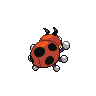 Ledyba secretes an aromatic fluid from where its legs join its body. This fluid is used for communicating with others. This Pokémon conveys its feelings to others by altering the fluid’s scent.